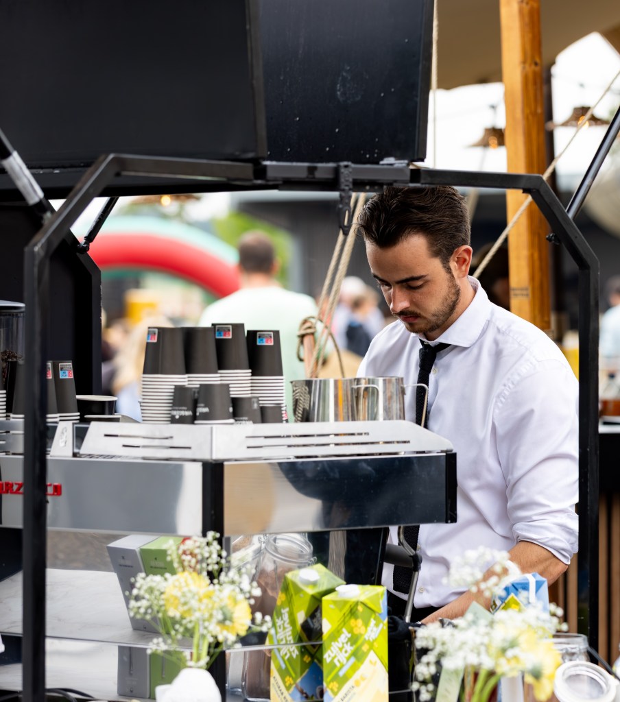 Een heerlijke kop koffie, waar en wanneer je maar wilt – dat is waar wij voor zorgen. Het is niet alleen de smaak die blijft hangen, maar ook de beleving van hoe deze wordt geserveerd. Wil je indruk maken op jouw evenement? Laat onze barista’s het verschil maken. Met onze mobiele koffiebars kunnen we op vrijwel elke locatie voor een unieke koffie-ervaring zorgen, die jouw gasten niet snel zullen vergeten.